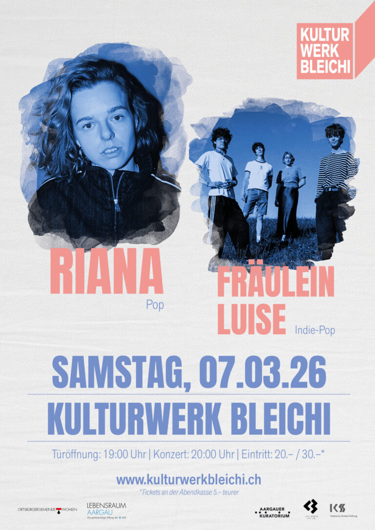 Nach dem Erfolg ihrer EP „Losloh“ und dem Gewinn des Swiss Music Award in der Kategorie „SRF3 Best Talent“ im Jahr 2024 geht die Appenzeller Musikerin Riana nun mit ihrem Debutalbum auf ihre erste Tour durch die Schweiz. Ihre Musik ist eine kraftvolle Mischung aus feinsinnigen Texten, die tief in ihrer Heimat und ihrer persönlichen Welt verwurzelt sind, und einem Sound, der gleichzeitig modern und von der Tradition inspiriert ist. Ehrlich – bescheiden – fadegrad! Die Fangemeinde wächst kontinuierlich, nicht zuletzt nach der grossen, ausverkauften Tour im Winter 2024/2025 mit Dabu Fantastic, die Riana als Support Act begleiten durfte.