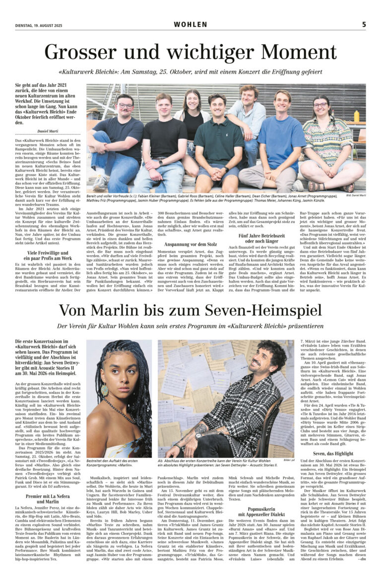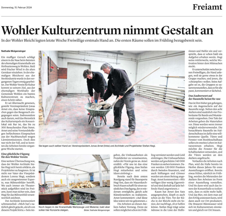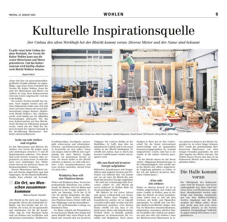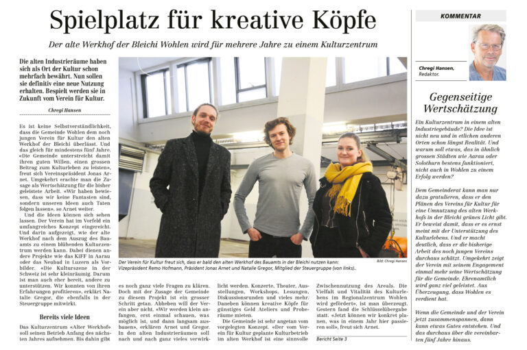 Presseberichte zum Kulturwerk Bleichi in Wohlen AG